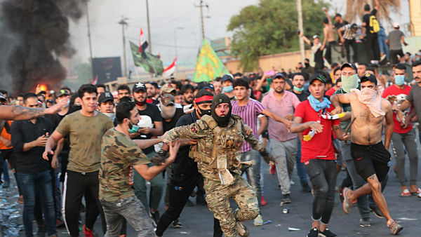 பாக்தாத்தில் உள்ள வரலாற்று சின்னமான தரீர் சதுக்கத்தை நோக்கி பேரணியாக சென்ற ஆயிரத்துக்கும் மேற்பட்டோரை போலீசார் தடுத்து நிறுத்தியதால் வன்முறை வெடித்தது.