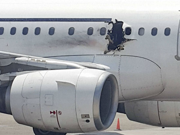 விமானத்தில் சிறிய அளவில் வெடிகுண்டு விபத்து ஏற்பட்டதால் தான் ஓட்டை விழுந்தது என்று விமானி தெரிவித்துள்ளார். விமானி சாமர்த்தியமாக செயல்பட்டு விமானத்தை பத்திரமாக தரையிறக்கினார்.