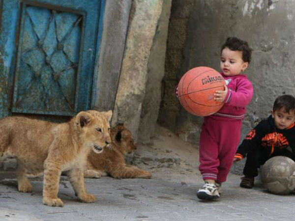 காஸா : பாலஸ்தீனத்தின் காஸாவில் வாழும் குடும்பம் ஒன்று, செல்லப்பிராணியாக வளர்க்க இரண்டு சிங்கக்குட்டிகளை வாங்கியுள்ளது.