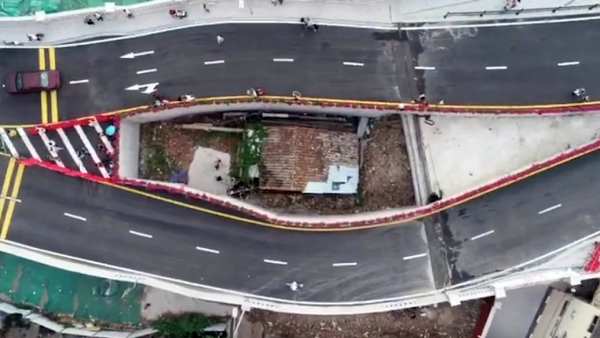 பின்னர் வரிப்பணம் வீணடிக்கக் கூடாது என கருதி பெண்ணின் வீட்டை மட்டும் விட்டுவிட்டு அதனைச் சுற்றி பாலம் கட்டினர் சீன அதிகாரிகள். தற்போது பாலத்தின் நடுவே உள்ள ஒற்றை வீட்டை பார்க்க அப்பகுதியில் சுற்றுலா பயணிகள் ஏராளமானோர் குவிந்து வருகின்றனர்.