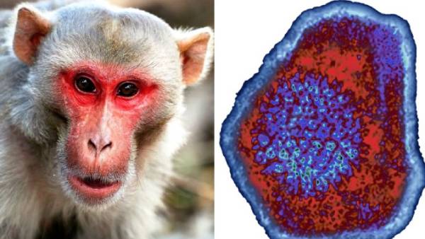 மக்காக்களில் ஆல்பாஹெர்பெஸ்வைரஸ் என்ஸூடிக் குரங்கு வைரஸ் ஆரம்பத்தில் 1932ம் ஆண்டு கண்டுபிடிக்கப்பட்டது. தேசிய மருத்துவ நூலகத்தில் வெளியிடப்பட்ட ஒரு அறிக்கையின்படி, குரங்கு வைரஸ் மனிதர்களுக்கு பரவும்போது மத்திய நரம்பு மண்டலத்தை செயலிழக்க வைக்கிறது என்று தெரிவிக்கப்பட்டுள்ளது.