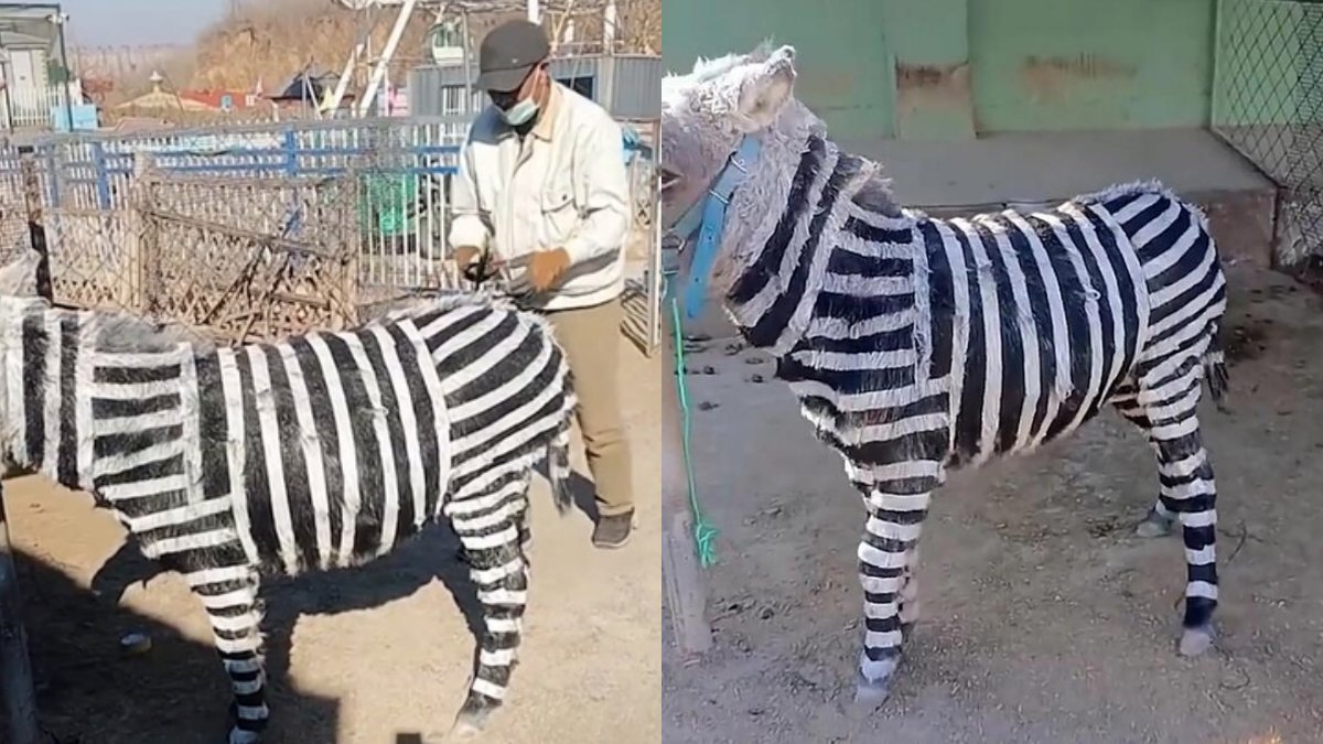 சீனாக்காரன் மூளையை பாருங்க..பூங்காவில் திடீரென வரி குதிரையாக மாறிய கழுதை.. ஏமாந்துப்போன மக்கள்