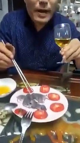 இந்த உணவு சீனாவில் தடை செய்யப்பட்டுள்ளது. இதனிடையே வாடிக்கையாளர் ஒருவர் உணவு விடுதியில் எலிக் குட்டிகளை சாஸில் நனைத்து சாப் ஸ்டிக் மூலம் உண்ணும் வீடியோ வைரலாகி வருகிறது.