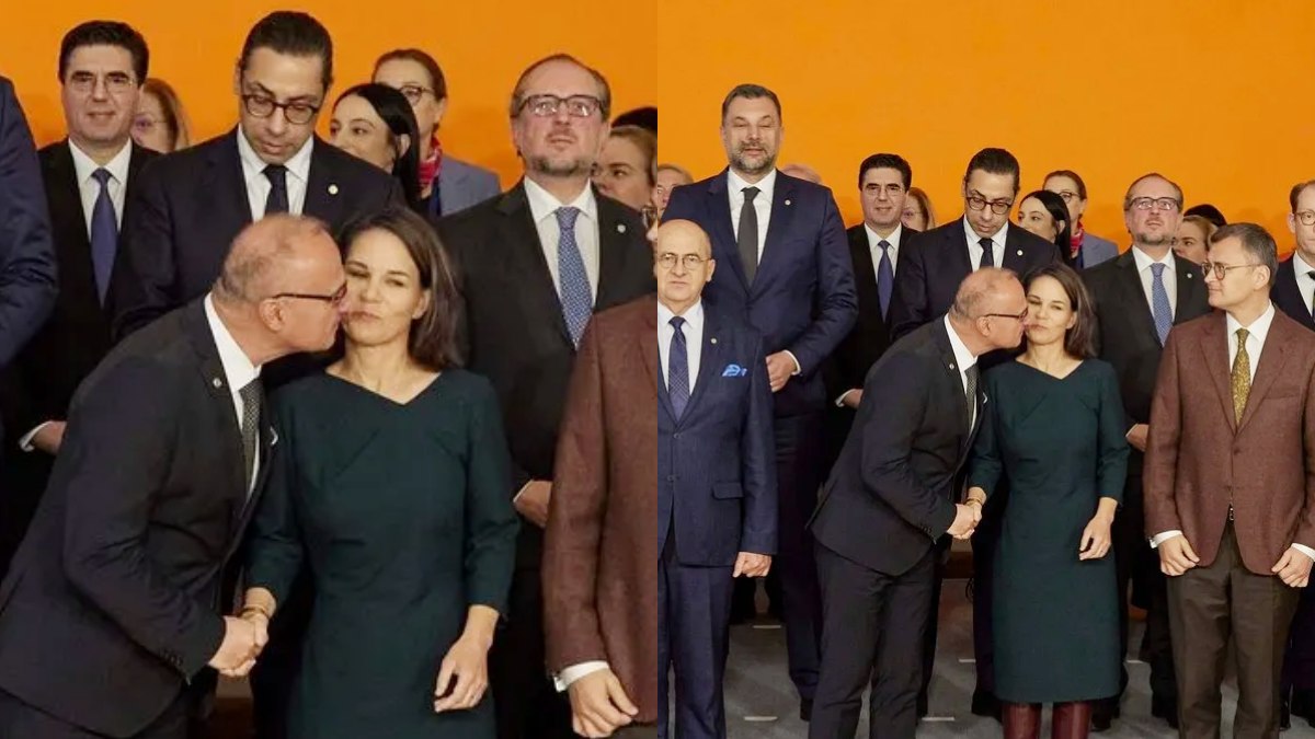 இந்த வேளையில் குரேஷியா நாட்டின் 65 வயது நிரம்பிய வெளியுறவுத்துறை அமைச்சர் கோர்டன் கிர்லிக் ராட்மேன் முகம் சுளிக்கும் வகையிலான செயலை செய்தார். அதாவது அவரை வரேவற்ற ஜெர்மனி பெண் வெளியுறவுத்துறை அமைச்சர் அன்னாலெனா பேர்போக்கினிடம் கைக்குலுக்கியதோடு, கன்னத்தில் திடீரென முத்தமிட முயன்றார். இதனால் அன்னாலெனா பேர்போக் அதிர்ச்சியடைந்து விலகினார்.