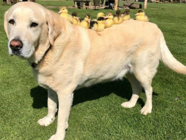தாய் இல்லாமல் கஷ்டப்பட்ட 9 வாத்துக்குஞ்சுகள்... வளர்ப்புத் தந்தையான நாய்!