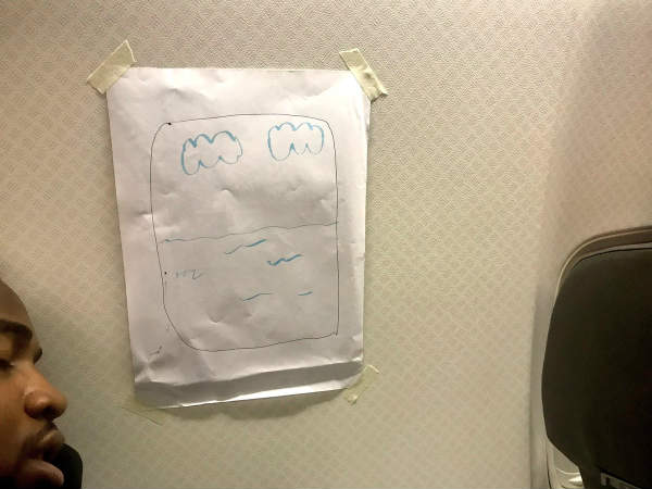 கொஞ்சம் நஞ்சம் தெரிஞ்சிட்டு இருந்த மேகம்கூட சுத்தமா தெரியாம போயிடுச்சு. ஃப்ளைட் இறங்கற வரைக்கும் வாயே திறக்காமல் கப்-சிப் என்று உட்கார்ந்துவிட்டார் மனுஷன்... ஆனால் பெண் வரைந்த அந்த படத்தை பார்த்தால் குழந்தைங்க வரையறதே தேவலாம் போல இருக்கு. இந்த படம்தான் இணையத்தில் வைரலாகி வருகிறது.
