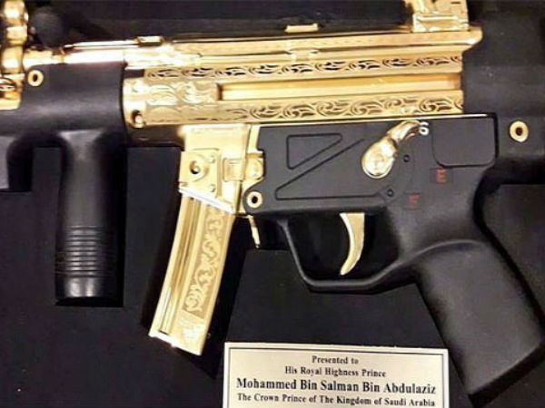 சவுதி முடிஇளவரசர் முகமது பின் சல்மான் பாகிஸ்தானுக்கு சென்றபோது அவருக்கு அங்கு தங்க துப்பாக்கி ஒன்று பரிசளிக்கப்பட்டு உள்ளது.