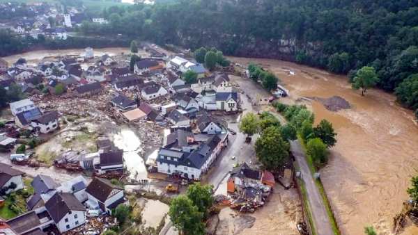 மேற்கு ஐரோப்பா முழுவதும் கடந்த சில நாட்களாகவே கனமழை பெய்து வருகிறது. இதனால் அங்குள்ள ஆறுகளில் வெள்ள நீர் கரைபுரண்டு ஓடுகிறது. இதனால் கரையோரம் வசிக்கும் மக்கள் மிகக் கடுமையாகப் பாதிக்கப்பட்டுள்ளனர். 100க்கும் மேற்பட்ட வீடுகள் இந்த வெள்ளத்தில் முழுவதுமாக அடித்துச் செல்லப்பட்டுள்ளன. பல இடங்கள் முழுவதுமாக மழை நீரில் மூழ்கிவிட்டது.