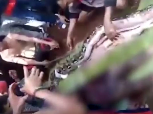 இதையடுத்து மலைப்பாம்பு நிபுணர்களுடன் போலீஸார் விரைந்து வந்தனர். அந்தப் பாம்பைப் பார்த்த நிபுணர்கள், அது மனிதரை விழுங்கியிருக்கலாம் என்று சந்தேகம் கொண்டனர். இதையடுத்து அந்தப் பாம்பு கொல்லப்பட்டது. அதன் பிறகு பாம்பின் வயிற்றுப் பகுதியில் 7 மீட்டர் அளவுக்கு அறுக்கப்பட்டது. .அப்போது வயிற்றுக்குள் ஒரு பெண்ணின் சடலம் இருப்பதைப் பார்த்து அனைவரும் அதிர்ந்தனர்.