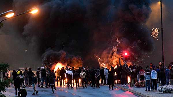 கிட்டத்தட்ட 300 பேர் இந்த கலவரத்தில் ஈடுப்பட்டதாக கூறப்படுகிறது. இங்கு 20க்கும் மேற்பட்ட கார்கள், பைக்குகள் தீ வைக்கப்பட்டது. கலவரம் இன்னும் தீவிரமாக நடந்து வருகிறது. பல்வேறு கட்டிடங்களுக்கு தீ வைக்கப்பட்டு உள்ளது. இதுவரை கலவரத்தில் ஈடுப்பட்ட 50 பேர் கைது செய்யப்பட்டுள்ளனர். அங்கு 1500 போலீசார் வரை குவிக்கப்பட்டுள்ளனர்.கலவரம் காரணமாக அங்கு பதற்றமான சூழ்நிலை நிலவி வருகிறது.