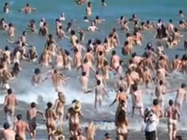 உலக சாதனைக்காக நிர்வாணமாக கடலில் நீந்திய 745 பேர்