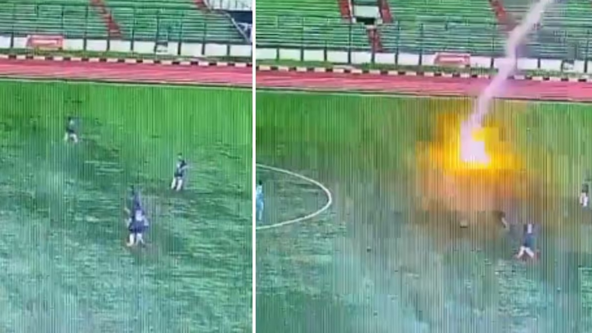 அப்படியொரு பகீர் சம்பவம் தான் இந்தோனேசிய நாட்டில் நடந்துள்ளது. அங்கே மழை பெய்து கொண்டு இருந்த போது விளையாடிக் கொண்டிருந்த கால்பந்து வீரர் ஒருவரை மின்னல் தாக்கிய வீடியோ இணையத்தில் பகீர் கிளப்பியுள்ளது.