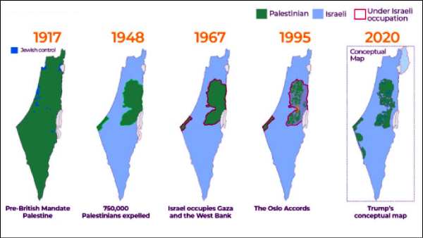 மாறாக காஸாவில் ஹமாஸ் படையை தாக்கி, அங்கே முழுக்க முழுக்க எல்லைகளை அடைத்து காஸாவையும் இஸ்ரேல் கட்டுப்படுத்த முயன்று வருகிறது. தற்போது நடந்து வரும் மோதலில் காஸாவை மொத்தமாக கைப்பற்றும் திட்டத்தில் இஸ்ரேல் உள்ளது. மேலே கொடுக்கப்பட்டு இருக்கும் மேப்பில் 1947ல் இருந்து 2020 வரை இஸ்ரேல் எப்படி பாலஸ்தீனத்தை கட்டுப்படுத்தியது என்று காட்டப்பட்டுள்ளது.