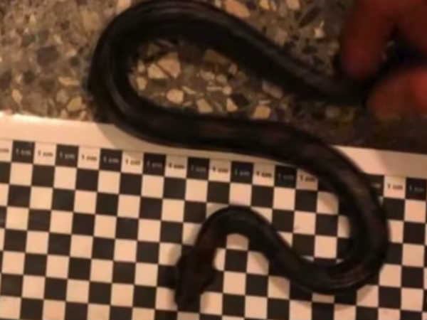 அந்த பையை பிரித்து பார்த்தபோது, அதில் சுமார் 16 இன்ஞ்ச் நீளமுள்ள பாம்பு ஒன்று இருந்தது. இதை பார்த்து அதிர்ச்சியடைந்த அதிகாரிகள், அந்த நபரை உடனடியாக கைது செய்தனர். பாம்பையும் மீட்டனர்.