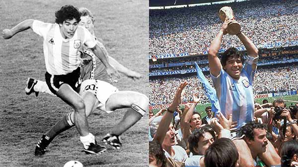 அந்தவகையில் 1986-ம் ஆண்டு அர்ஜெண்டினா கால்பந்தாட்ட அணியின் கேப்டனாக செயல்பட்டு உலகக்கோப்பையை பெற்றுக்கொடுத்து தனது தாய்நாட்டுக்கு பெருமை சேர்த்தார். மைதானத்தில் பந்தை உருட்டிக்கொண்டு செல்வதில் மாரடோனாவின் கால்கள் நாட்டியமாடும் என்றே சொல்லலாம். அந்தளவுக்கு மிக லாவகமாக விளையாண்டு கோல்களை ஈட்டிக்கொடுப்பார்.