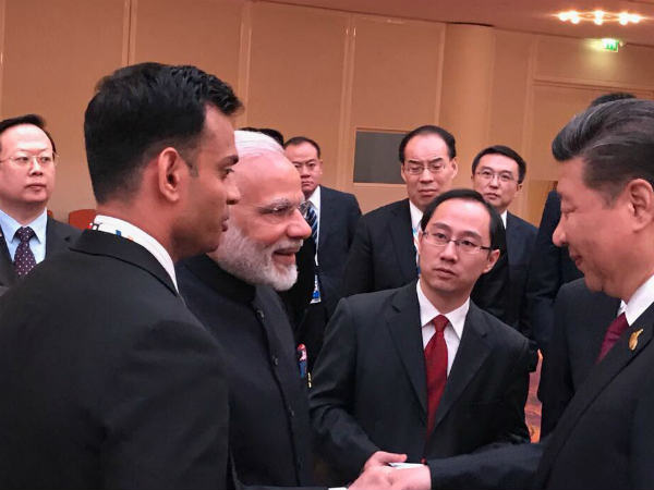 At d BRICS leaders' informal gathering @ Hamburg hosted by China, PM @narendramodi and President Xi had a conversation on a range of issues pic.twitter.com/ervZw46PH0