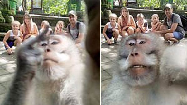 பாலி: இந்தோனேஷியாவில் குரங்குகள் காட்டில் ஒரு குடும்பத்தினர் செல்பி எடுத்தபோது அங்கு வந்த குரங்கு அந்த கேமராவுக்கு போஸ் கொடுத்து செல்பி எடுத்துக் கொண்ட சம்பவம் சிரிப்பை வரவழைக்கிறது.