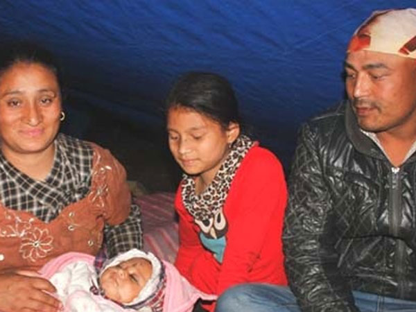 இந்நிலையில் நில நடுக்கத்தால் பாதிக்கப்பட்டு முகாம் ஒன்றில் தங்கியிருந்த குழந்தையின் பெற்றோரை மீட்புப்படையினர் கண்டுபிடித்தனர். அந்த குழந்தையின் பெற்றோர் ஷ்யாம் அவால் - ரேஸ்மிலா தம்பதியினர் என்று கண்டுபிடிக்கப்பட்டு அவர்களிடம் குழந்தையை ஒப்படைக்கப்பட்டது.
