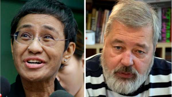 அமைதிக்கான நோபல் பரிசு 2 பத்திரிக்கையாளர்களுக்கு வழங்கப்பட்டுள்ளது. திமித்ரி மொரொட்டா, மரியா ரிசா பேச்சுரிமைக்காக வழங்கப்பட்டுள்ளது.