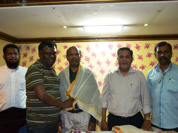 சிறப்பு விருந்தினர் மஸ்கட் தமிழ்ச் சங்கத்தின் செயலாளர் கவிஞர் பஷீர் அவர்களுக்கு தமிழ்தேர் சார்பில் கவிஞர் காவிரிமைந்தன் பொன்னாடை அணிவித்தார். திருமதி பஷீர் அவர்களுக்கு நினைவுப் பரிசினை திருமதி பரக்கத் ஹசன் வழங்கினார். தலைமையேற்ற திரு. ஹசன் அஹமது அவர்களுக்கு ஊடகவியலாளர் முதுவை ஹிதாயத்துல்லா பொன்னாடை அணிவித்தார். நினைவுப் பரிசை தமிழ்த்தேர் பதிப்பாசிரியர் கவிஞர் ஜியாவுதீன் வழங்கினார்.