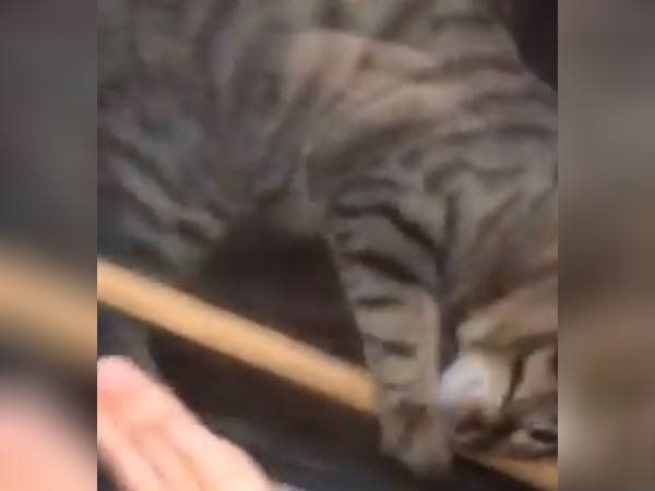 அறைக்குள் சிக்கி கொண்ட பெண்ணை பூனை ஒன்று காப்பாற்றி உள்ளது.