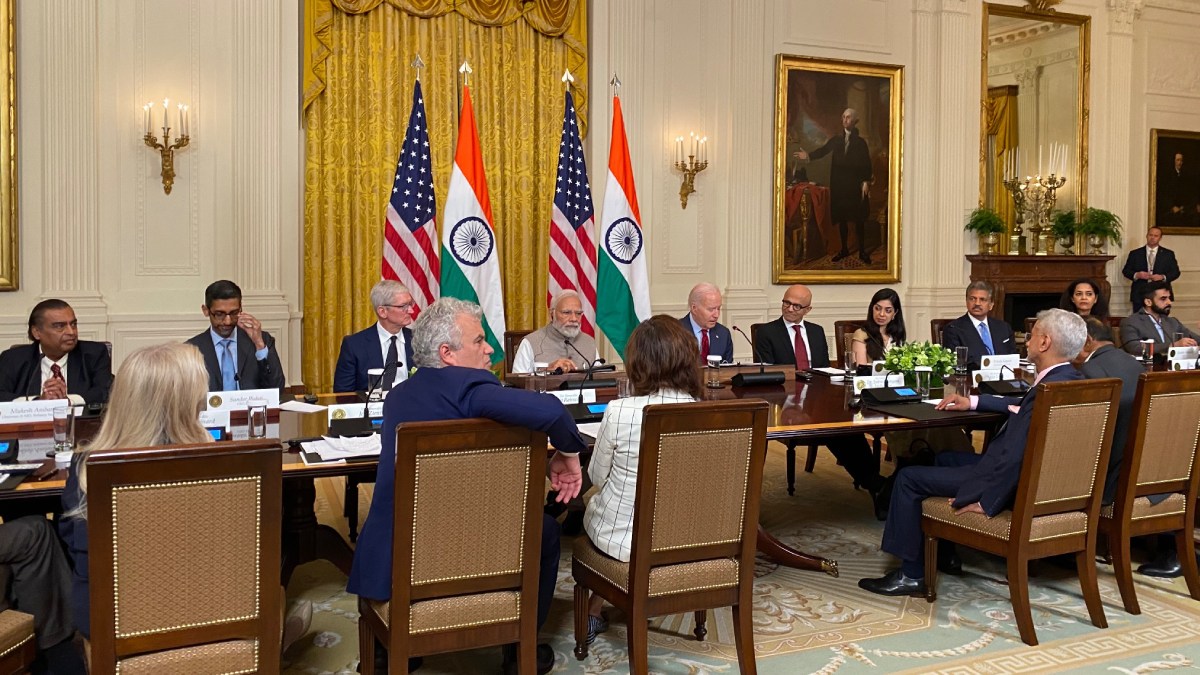 இந்நிலையில், இன்று இந்திய மற்றும் அமெரிக்க தொழில்நிறுவன சி.இ.ஓக்கள் கூட்டம் வெள்ளை மாளிகையில் இன்று நடைபெற்றது. இதில் இந்திய பிரதமர் மோடி, அமெரிக்க அதிபர் ஜோ பைடன் ஆகிய இருவரும் இணைந்து பங்கேற்றனர்.