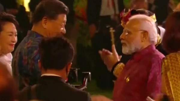 இந்தோனேசிய அதிபர் ஜோகோ விடோடோ வழங்கிய ஜி20 தலைவர்களுக்கான டின்னர் விருந்தில் தான் இந்த சர்ப்ரைஸ் சந்திப்பு நடந்துள்ளது. இது தொடர்பாக வெளியான வீடியோ ஒன்றில் சீன அதிபர் ஜி ஜின்பிங்கும் பிரதமர் நரேந்திர மோடியும் கைகளைக் குலுக்கியவாறு பேசிக் கொண்டு இருக்கிறார்கள். இரு தலைவர்களுமே ஜி20 பிரதிநிதிகள் எப்போதும் அணியும் பாரம்பரிய உடைகளை அணிந்து இருந்தனர்.