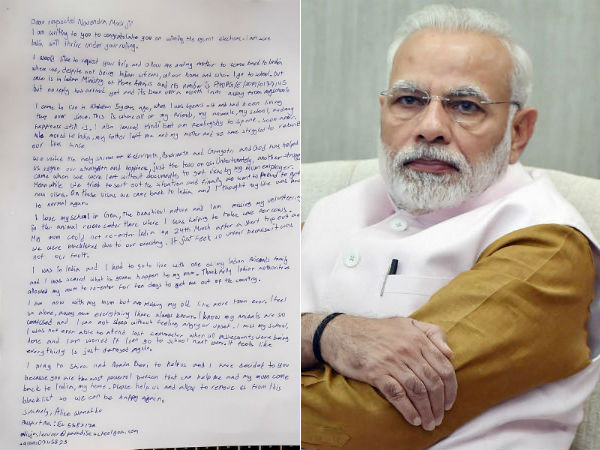 ஆனால் இவரது கோரிக்கைக்கு எந்த பலனும் கிடைக்கவில்லை. தற்போது தாயும், மகளும் கம்போடியாவில் வசித்து வருகின்றனர். இந்த நிலையில் அலிக்ஜா, இரண்டாவது முறை பிரதமராக நரேந்திர மோடி பதவியேற்றதை அடுத்து அவருக்கு உருக்கமான கடிதத்தை எழுதியுள்ளார்.