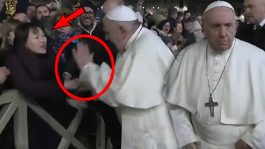 அப்போது கூட்டத்தில், நின்ற, ஒரு பெண், அவர் கையைப் பிடித்து இழுத்தார். இதனால் சற்று நிலைகுலைந்து போனார், போப் பிரான்சிஸ். அந்த பெண்ணின் கையை இரு தடவை தட்டிவிட்டார்.