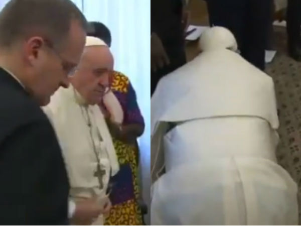 82 வயதாகும் போப் பிரான்சிஸ் இவ்வாறு செய்தது அங்கே குழுமியிருந்தவர்களுக்கே அதிர்ச்சியை ஏற்படுத்தியது. தெற்கு சூடானின் உள்நாட்டு போரால், இதுவரை 383,000 பேர் கொல்லப்பட்டுள்ளனர். எனவே போப் பிரான்சிஸ், மனிதாபிமான அடிப்படையில், இவ்வாறு ஒரு செயலை செய்துள்ளார்.
