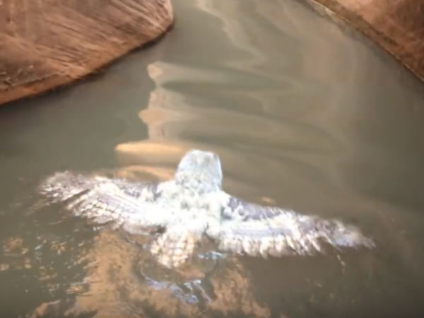 அதைத் தொடர்ந்து அந்த ஆந்தை கொஞ்சமும் அசராமல் அதன் இறகுகளை கொண்டு நீரில் நீந்தி கரை சேர்ந்தது. பின்னர் இறகுகளை காயவைத்த பின்னர் பறந்து சென்று தாய் ஆந்தையிடம் தஞ்சம் அடைந்தது.
