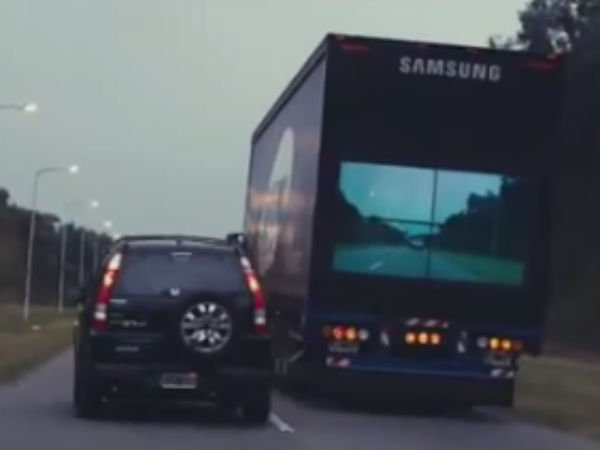 அதாவது நமக்கு முன்பு என்ன உள்ளது என்பதை தெளிவாக படம் பிடித்துக் காட்டுகிறது சாம்சங்கின் புதிய திரைத் தொழில்நுட்பம். அதாவது பெரிய வாகனங்களின் பின்னால் பொருத்தப்பட்ட பெரிய சைஸ் டிவி திரையில் அந்த வாகனத்திற்கு முன்பு என்ன உள்ளது என்பதை பின்னால் இருந்தபடியே தெரிந்து கொள்ளலாம்.