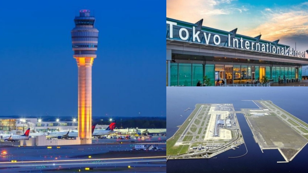 ஆறாவது இடம்: ஹார்ட்ஸ்ஃபீல்ட்-ஜாக்சன் அட்லாண்டா சர்வதேச விமான நிலையம். அமெரிக்க மாநிலமான ஜார்ஜியாவில் உள்ள அட்லாண்டாவில் இயக்கி வருகிறது. இத மொத்த நிலப்பரப்பு 4,700 ஏக்கர். ஐந்து ஓடுபாதைகளைக் கொண்டுள்ளது.