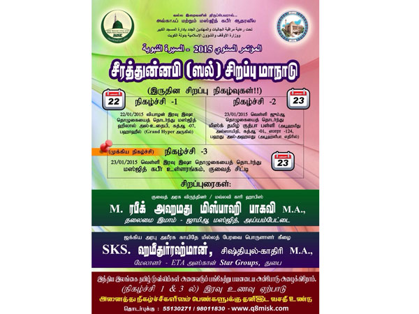 குவைத்தில் இன்றும், நாளையும் நடக்கும் சீரத்துன்னபி சிறப்பு மாநாடு