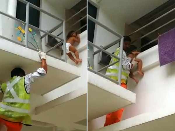 சிங்கப்பூரில் ஜூராங் கிழக்கு எஸ்டேட் பகுதியில் ஒரு அடுக்குமாடி குடியிருப்பின் இரண்டாவது மாடியில், தவழ்ந்து விளையாடிக்கொண்டிருந்த குழந்தை கம்பித் தடுப்பைத் தாண்டி தவறி விழுந்தது. ஆனால் அதிர்ஷ்ட வசமாக அந்த குழந்தையின் கழுத்து, கம்பியில் மாட்டிக்கொண்டது. மேலே ஏறவும் முடியாமல் கம்பியிலிருந்து விடுபடவும் முடியாமல் அந்தரத்தில் தவித்தது அந்தக்குழந்தை.