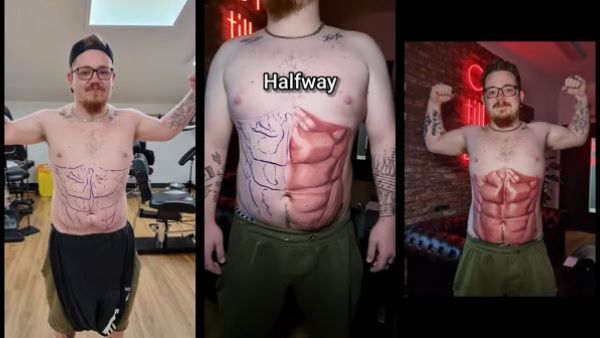 உடனே கன்டருக்கு செம யோசனை ஒன்று தோன்றியிருக்கிறது. இதையடுத்து அவர் அந்த மனிதரை தனது ஸ்டுடியோவுக்கு வரவழைத்து, இரண்டு நாட்கள் முயற்சித்து, அசல் சிக்ஸ் பேக் போன்று அவரது வயிற்றில் டாட்டூ போட்டு விட்டு விட்டார். கூடவே இதனை வீடியோவாகவும் பதிவு செய்து தனது சமூகவலைதளப் பக்கத்திலும் கன்டர் வெளியிட்டுள்ளார்.