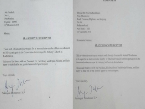 அந்தக் கடிதத்தில், சசிகலா வேண்டுகோள் விடுத்ததின் அடிப்படையில் கச்சத்தீவு புனித அந்தோணியார் ஆலயத் திருவிழாவில் ஏற்கனவே 20 தமிழக மீனவர்களை அனுமதிக்க முடிவெடுத்திருந்த நிலையில், தற்போது 100 தமிழக மீனவர்கள் கலந்துகொள்ள அனுமதி அளித்துள்ளதாக குறிப்பிடப்பட்டுள்ளது.