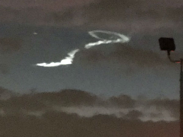 சூரியன் மறையும் மாலைபொழுதில் வண்ணங்கள் நிறைந்த வானில், மின்னல் தாக்கியது போல் வெளிச்சம் ஏற்பட்டது. அதனை கண்ட மக்கள், புகைப்படம் மற்றும் வீடியோ எடுத்து ட்வீட்டரில் ஷேர் செய்தனர்.