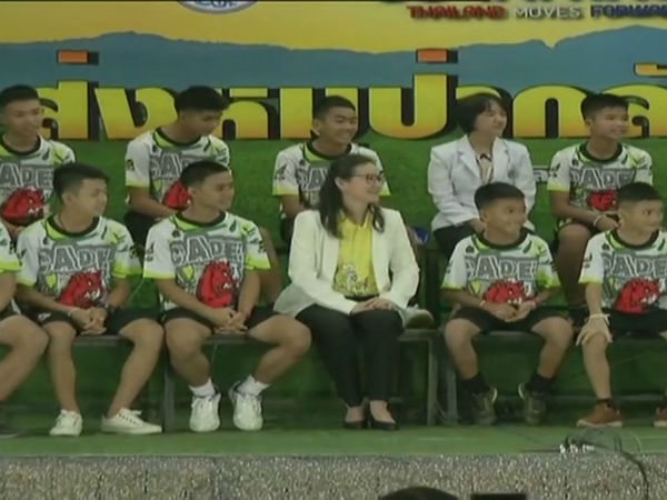 பாங்காக்: தாய்லாந்து குகையில் இருந்து மீட்கப்பட்ட 12 சிறுவர்களும் தற்போது நிருபர்களுக்கு பொது நிகழ்ச்சியில் பேட்டி அளித்து இருக்கிறார்கள்.