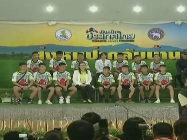 தாய்லாந்து குகையில் இருந்து மீட்கப்பட்ட 12 சிறுவர்களும் தற்போது நிருபர்களுக்கு பொது நிகழ்ச்சியில் பேட்டி அளித்து இருக்கிறார்கள்.