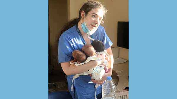 கலவர முகம்.. கையில் 3 பச்சிளம் குழந்தைகள்.. பேச முயற்சித்த நர்ஸ்... கலங்க வைக்கும் பெய்ரூட் படம்