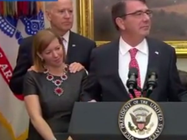 அமெரிக்க பாதுகாப்புத் துறை செயலாளராக ஆஷ் கார்டர் பதவியேற்றுக் கொண்டார். அந்த விழாவில் அவருக்கு துணை அதிபர் ஜோ பிடன் பதவிப் பிரமாணம் செய்து வைத்தார். மேடையில் பிடன் கார்டரின் மனைவிக்கு பின்புறமாக நின்று அவரின் தோள்கள் மீது கைகளை வைத்து காதுக்கு அருகில் வந்து ஏதோ தெரிவித்தார். மாற்றான் மனைவிக்கு இத்தனை அருகிலா ஒரு துணை அதிபர் செல்வது என்று பலரும் அவரை ட்விட்டரில் விமர்சனம் செய்து வருகின்றனர்.