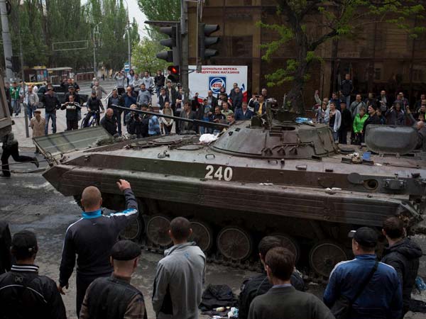 இதேபோன்று உக்ரைனின் கிழக்குப்பகுதியிலும் ரஷ்ய ஆதரவு கிளர்ச்சியாளர்கள் அரசு அலுவலகங்களை கைப்பற்றி, தனி நாடு கோரிக்கைக்கான போராட்டத்தை தொடங்கினர்.