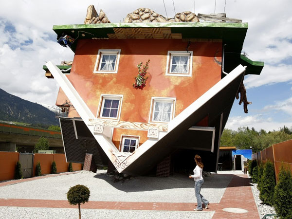 இந்த வீட்டில் பர்னிச்சர்கள் உட்பட எல்லாமே தலைகீழாக அமைக்கப்பட்டுள்ளன.ஏன் சாப்பிடும் மேசை கூட தலைகீழாக அமைக்கப்பட்டுள்ளது.