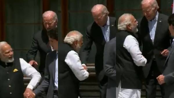 அப்போது அங்கு நின்ற அமெரிக்க அதிபர் ஜோபைடன் பிரதமர் நரேந்திர மோடியை நோக்கி நடந்து வந்தார். பிறகு பிரதமர் நரேந்திர மோடியின் தோளை தட்டி அழைத்தார். நரேந்திர மோடி திரும்பி பார்க்கவே கையை நீட்டி ஜோபைடன் பிரதமர் நரேந்திர மோடிக்கு வாழ்த்து தெரிவித்தார். பிரதமர் நரேந்திர மோடியும் ஜோபைடனின் தோளை தட்டி வாழ்த்து தெரிவித்தார்.
