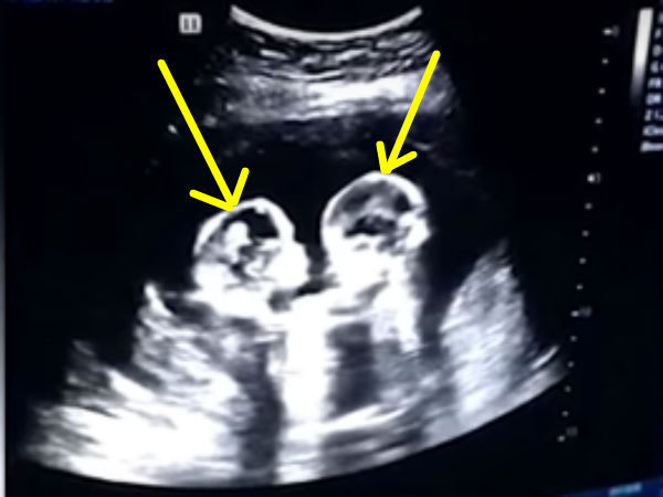 அப்போது கருப்பையில் இருந்த இரண்டு குந்தைகளும் சண்டை போட்டு கொண்டு விளையாடி உள்ளன. முழு கரு வளர்ந்திருந்த நிலையில் குழந்தையின் உருவம் கர்ப்பப்பையில் தெளிவாக தெரிகிறது.