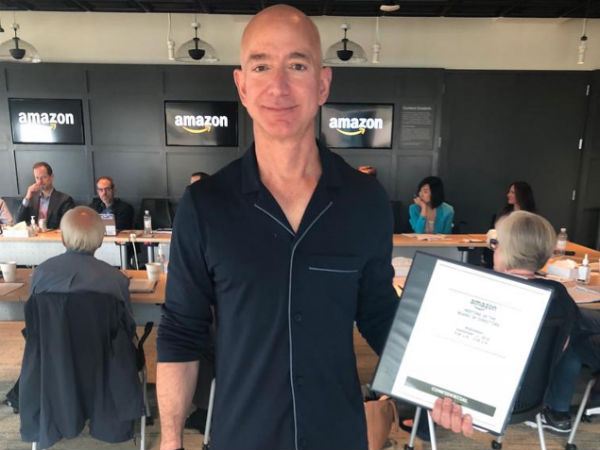 அமேசான் நிறுவனத்தின் தலைவரும் நிறுவனருமான ஜெப்பெசோஸ் அலுவலக மீட்டிங்கிற்கு பைஜாமா அணிந்து வந்தது வைரலாகி உள்ளது.
