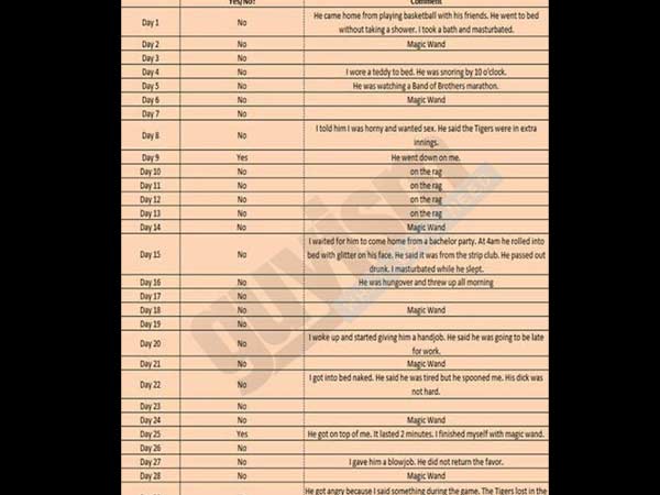 இப்போது இன்னொரு சம்பவம் அதே போல நடந்துள்ளது. ஆனால் இந்த முறை அதைச் செய்தவர் ஒரு மனைவி. தான் உறவுக்குக் கூப்பிட்டபோதெல்லாம் தனது கணவர் எப்படி தன்னைத் தவிர்த்தார் என்பதை தாகத்துடன் எக்ஸெல் ஷீட்டில் எழுதி வைத்து வெளியிட்டுள்ளார்.