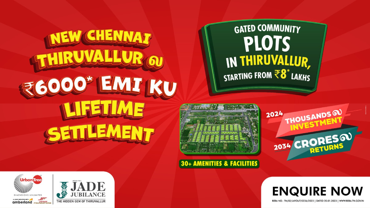 ஏன் அர்பன் ட்ரீ ஜேட் ஜுபிலன்ஸில் முதலீடு செய்ய வேண்டும்?: ஜேட் ஜூபிலன்ஸ் @ திருவள்ளூர் என்பது 20 ஏக்கர் பரப்பளவில் 600 சதுர அடி முதல் 2400 சதுர அடி வரையிலான 486 வில்லா பிளாட்களை கொண்டுள்ளது.