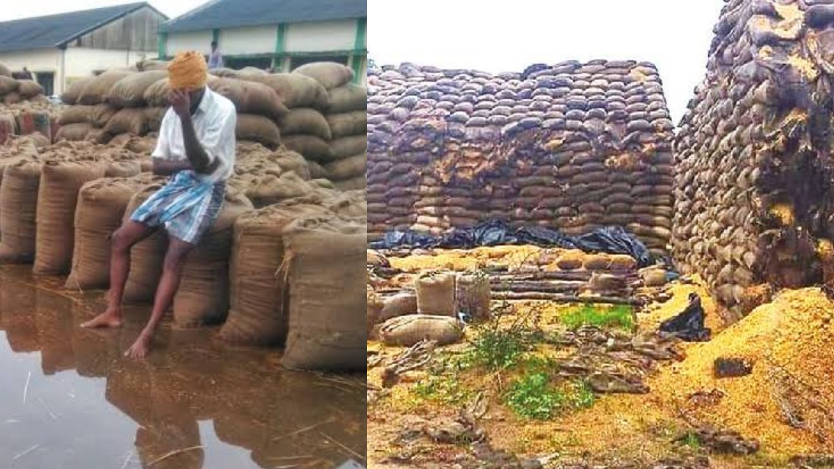 கஷ்டப்பட்டு விளைய வைத்த நெல்.. தார்ப்பாய் கூட போடாமல் அலட்சியம்.. மழையால் 5000 மூட்டைகள் சேதம்!